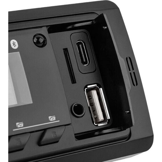 Максимальная выходная мощность 4*50 Вт; Поддержка автомобильной акустики на 4 или 8 Ом; Цвет подсветки кнопок передней панели - зеленый; Высокоскоростной цифровой PLL тюнер FM диапазона с памятью на 18 станций с функцией автоматической настройки; Поддерживаемые форматы воспроизводимых медиафайлов: MP3, WMA, WAV, FLAC; Поддержка беспроводной технологии Bluetooth (ver.5); Воспроизведение музыки по Bluetooth A2DP и AVRCP, поддержка Bluetooth hands-free и управления по Bluetooth; Микрофон громкой связи, встроенный в переднюю панель; Разъем USB на передней панели для воспроизведения файлов; USB Туре-С на передней панели с возможностью быстрой зарядки с максимальным током 2100мА; Слот microSDXC на передней панели; Поддержка карт памяти microSDXC и USB флэш-накопителей с объёмом до 128 ГБ; Аудиовход стерео mini-jack 3.5мм на передней панели; Четыре выхода RCA для подключения внешнего усилителя; Стандартный монтажный размер 1DIN; Установочная глубина - 36 мм; Комплект проводов с ISO разъёмом.