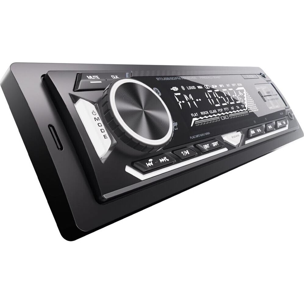 Автомобильный USB/SD ресивер Рабочее напряжение питания: 12/24 В постоянного тока (допустимые пределы 9,6-25 В) Максимальная выходная мощность: 36Вт Номинальная выходная мощность (при КНИ менее 1%): 10Вт Bluetooth (A2DP) 2xUSB/SD для воспроизведения Mp3, FLAC Зарядка USB 1.2A Белая подсветка кнопок Вход AUX (3,5 мм джек) Линейный выход RCA (1 пара) Цифровой радио-тюнер Память на 18 FM радиостанций Авто поиск, авто запоминание станций ID3 тэги (английский язык) Несъемная панель Жидкокристаллический (VA) дисплей ISO разъем (ISO коннектор в комплекте)