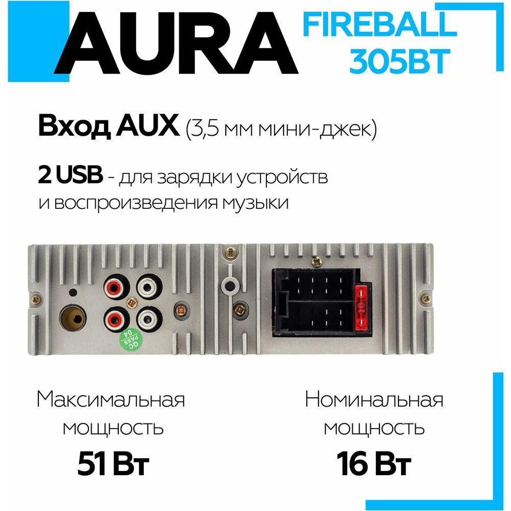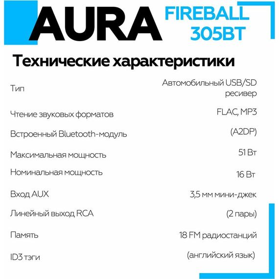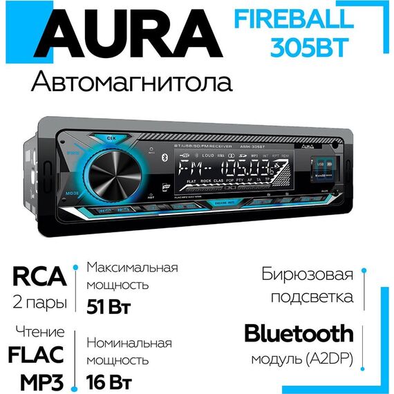 Автомагнитола AURA FIREBALL-305BT USB/SD ресивер