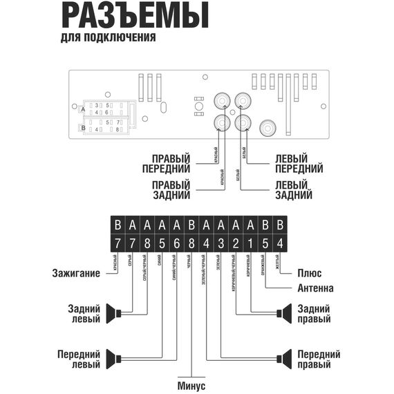 FM-радио + Воспроизведение форматов MP3 Управление из мобильного приложения Android/IOS Диапазон частот FM 87,5—108 МГц Bluetooth + (аудио, handsfree) Воспроизведение потокового аудиосигнала (A2DP) + Микрофон встроенный Максимальная выходная мощность 4 х 45 Вт Дисплей монохромный ЖК Подсветка кнопок Изменяемая RGB подсветка, 7 цветов Передняя панель фиксированная Поддержка карт памяти microSD Встроенный эквалайзер Classic, Pop, Rock, Flat Наличие USB порта + USB порт + (x2) Встроенные часы + Аудиовход AUX на передней панели Линейный RCA-выход + ISO-разъем + (с кабелем) Комплектация Ресивер, детали для установки, руководство пользователя Пульт дистанционного управления Приложение для Android/IOS Цвет черный