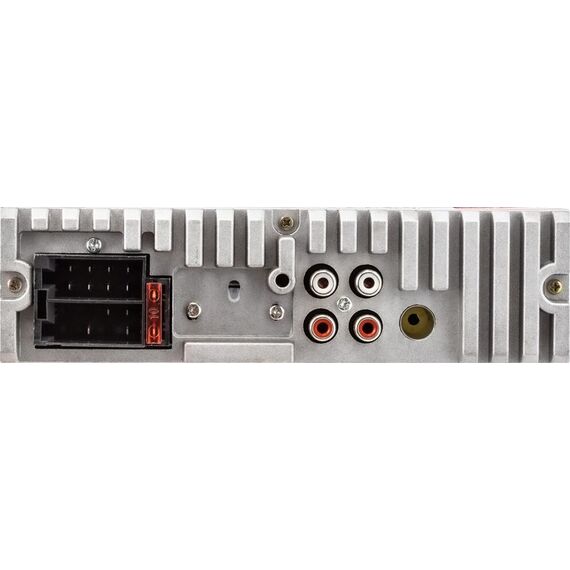 Фиксированная панель Монохромный ЖК-дисплей Высокочувствительный цифровой тюнер Память на 18 FM станций Поддержка носителей USB/SD до 32 ГБ Максимальная выходная мощность: 4 х 50 Вт Bluetooth (поддержка A2DP) Функция Hands-free Управление через мобильное приложение для Android и IOS Встроенный микрофон 4-канальный выход RCA (2xRCA) (2 В) Разъем AUX (3,5 мм) на передней панели RGB подсветка кнопок