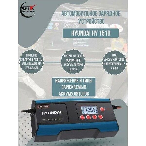 Новая линейка автомобильных зарядных устройств от HYUNDAI., Напряжение заряжаемого аккумулятора: 12/24 В, Емкость АКБ: 280 Ач, Режимы заряда: автоматический, Имеет 9 стадий этапов процесса зарядки, Тип устройства: инверторное, Класс защиты: IP20
