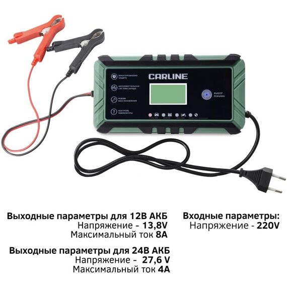 Зарядное устройство CARLINE CA-8A импульсное автоматическое для свинцово-кислотных аккумуляторов