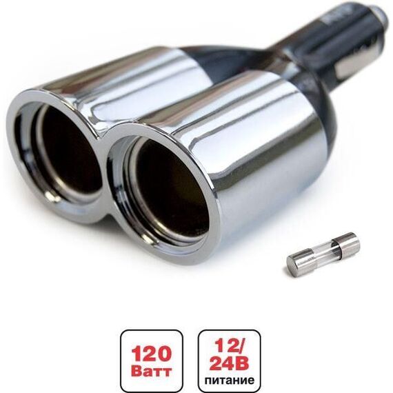 Компактный разветвитель позволяет подключать 2 устройства одновременно в разъем прикуривателя. Крепкое надежное устройство в корпусе из огнестойкого пластика. Защита от короткого замыкания и перепадов напряжения. Работа в сетях с номинальным напряжением 12В и 24В. Универсален для любых автомобилей. Характеристики •Питание: 12/24 В •Мощность: 120 Вт •Максимальный выходной ток: 10 А •Защита от короткого замыкания •Количество гнезд: 2 •Светодиодный индикатор сети •Плавкий предохранитель в корпусе штекера Материал: пластик Комплектация •Разветвитель •Предохранитель