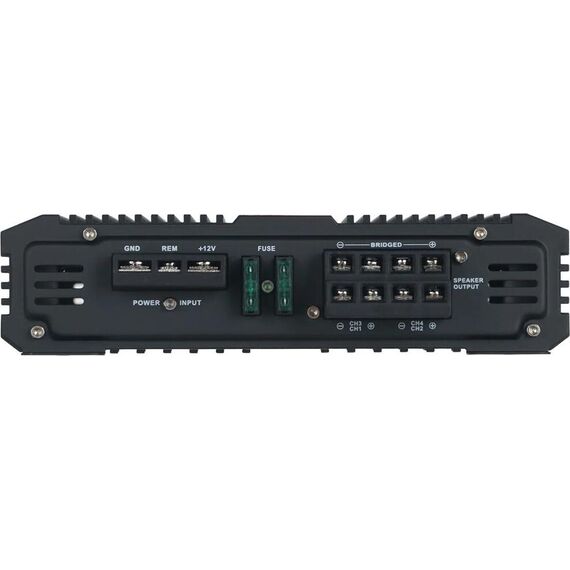 Высокомощный 4-канальный cтерео-усилитель класса AB Номинальная выходная мощность (4 Ом): 4 x 140 Вт Номинальная выходная мощность (2 Ом): 4 х 200 Вт Мостовое включение (1 ом): 2 x 400 Вт Пиковая выходная мощность: 1200 Вт Коэффициент гармонических искажений: 0,05 % Входная чувствительность: 0.14-7.77 В Взвешенное отношение сигнал/шум: 91 дБ Переключаемая регулировка усиления баса (Bass boost): 0-6-12 дБ Диапазон воспроизводимых частот: 10Гц ~ 30кГц Диапазон регулировки ФНЧ: 50-250 Гц Диапазон регулировки ФВЧ: 20 Гц-250 Гц Размеры устройства: 293 x 209 x 52 мм