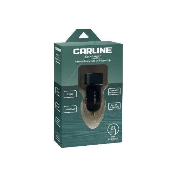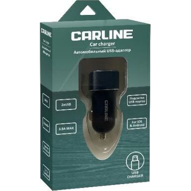 Автомобильное зарядное устройство CARLINE CH-2-31A адаптер 2хUSB 3.8А Max в прикуриватель 12/24В черный в коробке