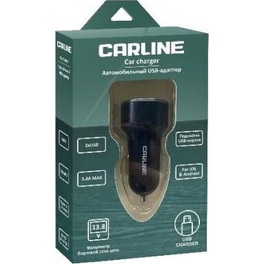 Автомобильное зарядное устройство CARLINE CH-2U-VM адаптер с вольтметром 2хUSB 3.4A Max в прикуриватель 12/24В черный в коробке