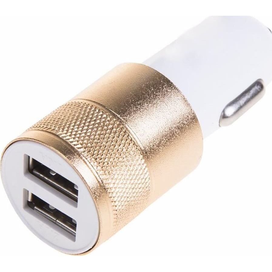 Автомобильное зарядное устройство с 2 USB портами. Технические характеристики: Входное напряжение DC: 12 V-24 V 2хUSB 5.0V±5% Выходной ток: 1000 mA, 2100 mA Цвет: белый-золотой. Подходит для всех типов мобильных устройств.