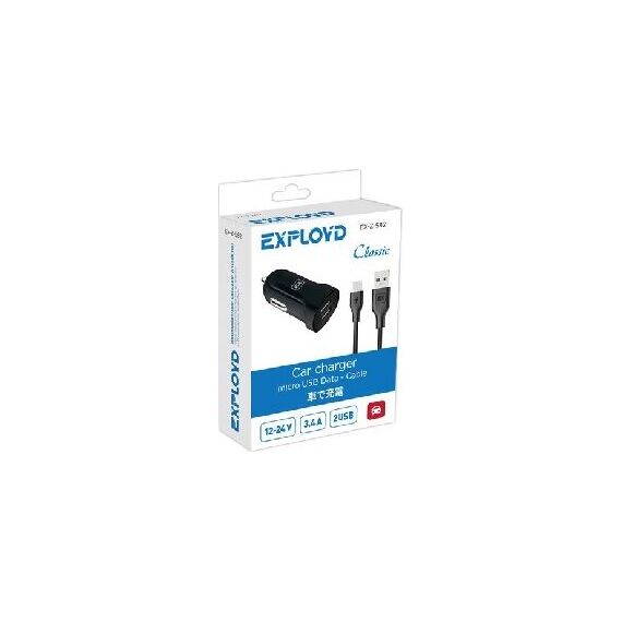 Автомобильное ЗУ/Exployd/micro USB/3.4А/2.4А+1А/2хUSB/чёрный/Classic/EX-Z-582