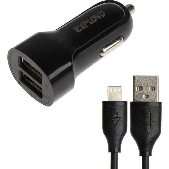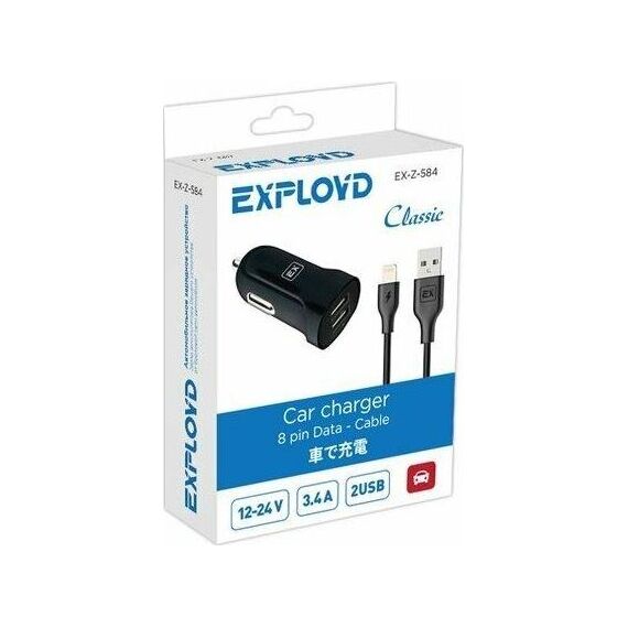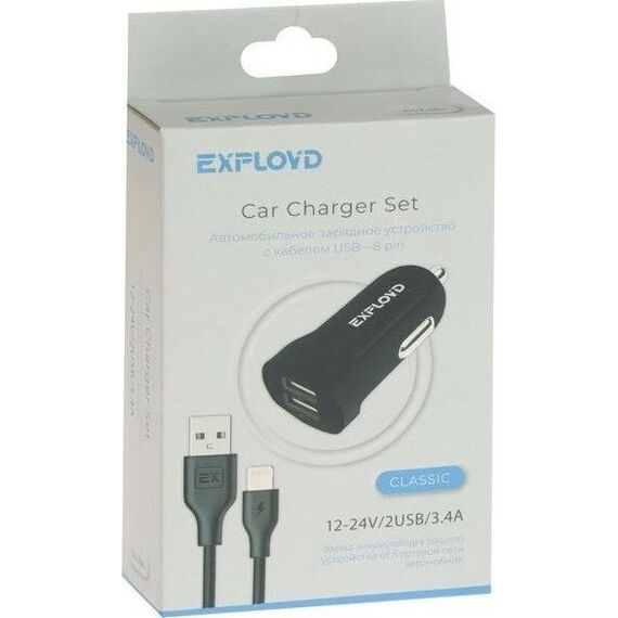 Автомобильное ЗУ/Exployd/8 Pin/3.4А/2.4А+1А/2хUSB/чёрный/Classic/EX-Z-584