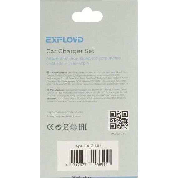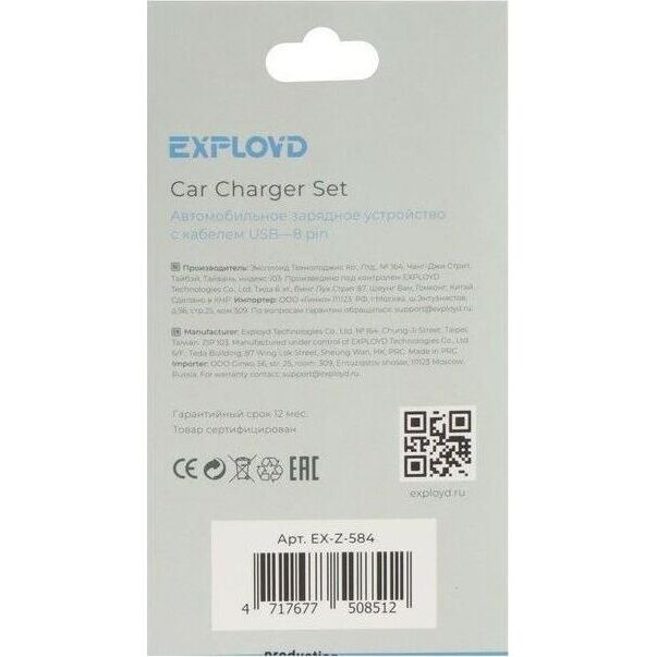 Автомобильное ЗУ EXPLOYD EX-Z-584 8 Pin 3.4А 2.4А+1А 2хUSB чёрный