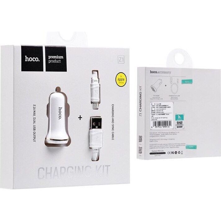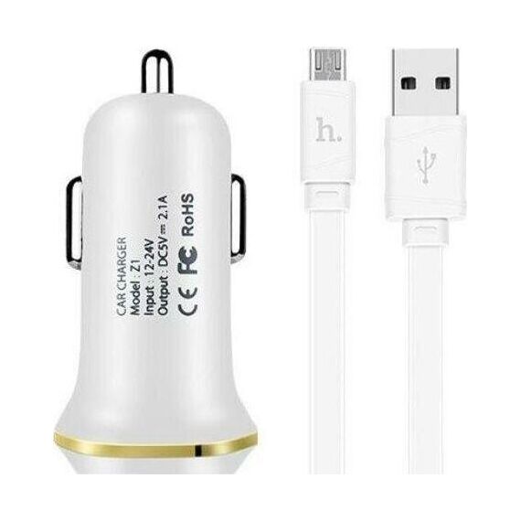 Автозарядка HOCO (6957531040194) Z1 2USB 2.1A MicroUSB белый