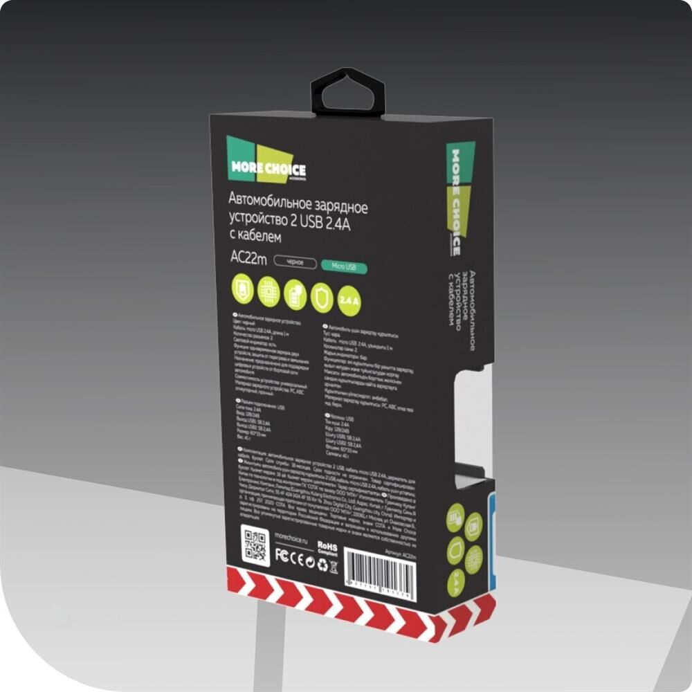 АЗУ MORE CHOICE (4627151191379) AC22m 2USB 2.4A для micro USB Black
