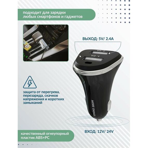 MORE CHOICE AC22i АЗУ 2USB 2.4A для 8-pin Black