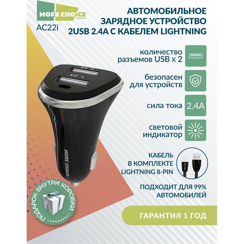 АЗУ MORE CHOICE (4627151191393) AC22i 2USB 2.4A для 8-pin Black