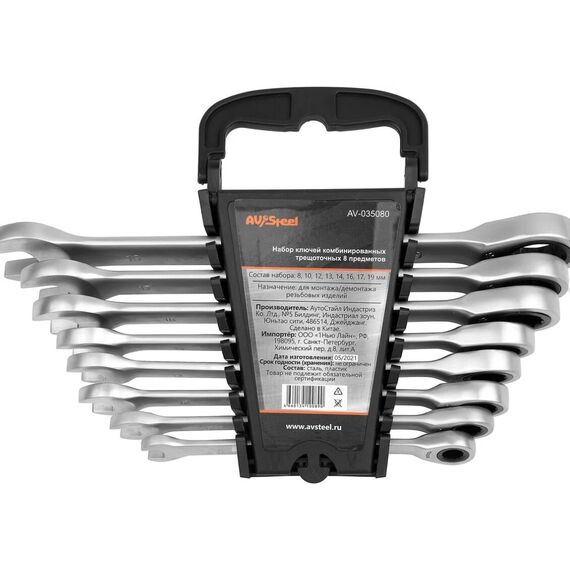 Набор ключей AV STEEL AV-035080 комбинированных трещоточных 8-19мм 8предм