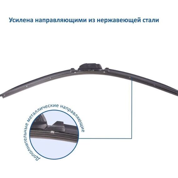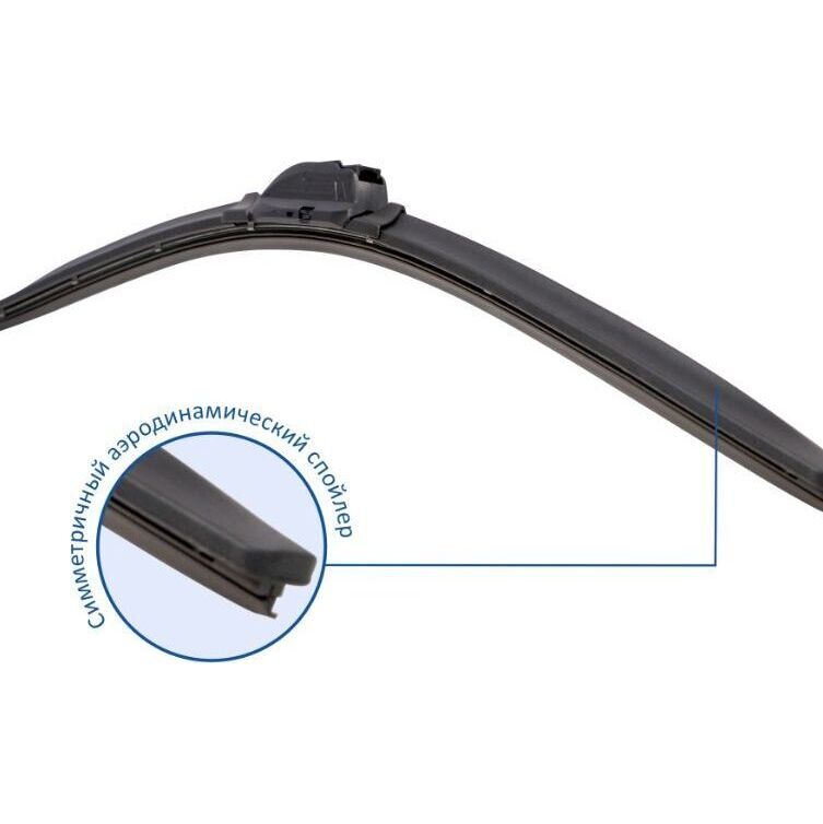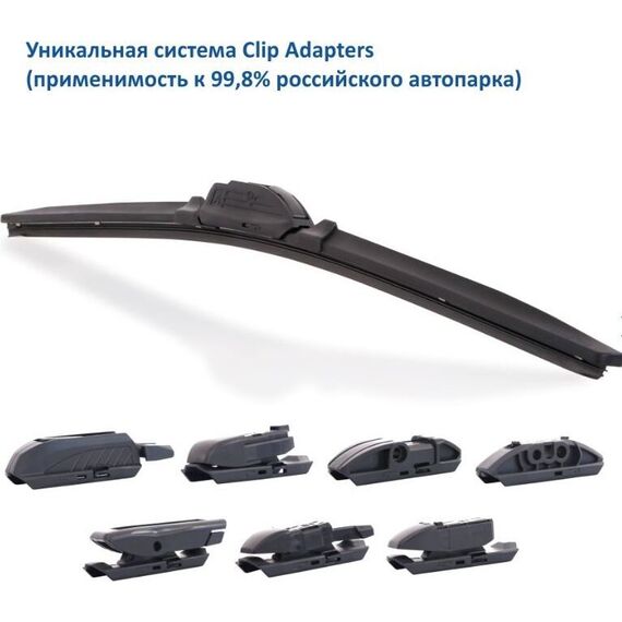 Уникальная система крепления адаптеров Clip Adapters (8 адаптеров на 11 видов крепления) позволяет использовать GOODYEAR PREMIUM на 99,8% всех моделей легковых автомобилей, в том числе с правым рулём Симметричный спойлер уникален в своём классе и выполнен из термопластичного эластомера, что делает его устойчивым к деформациям. Выполнен в виде литой конструкции и не имеет боковых заглушек, что значительно снижает обмерзание краёв щётки. Конструкция крепления лезвия имеет не только металлическую пластину на которой крепится лезвие, но и две дополнительные направляющие из нержавеющей стали, которые обеспечивают более прочное крепление резинового лезвия. Резиновое лезвие класса Triple A (ААА). Лезвие проходит процедуру полировки удаление шероховатостей поверхности.