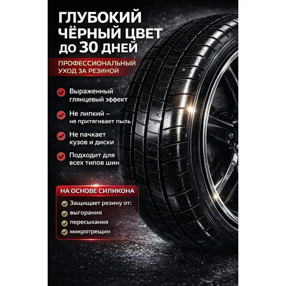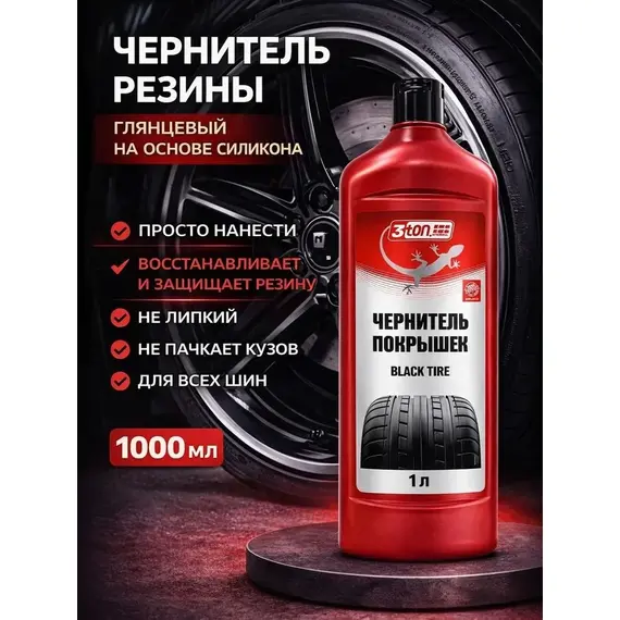 Чернитель покрышек ТН-510 1000мл - эффективное средство предназначено для восстановления первоначального внешнего вида шин, бамперов, а также резиновой и пластиковой отделки автомобиля. Придает обрабатываемой поверхности интенсивный блеск. Благодаря наличию силиконов на поверхности формируется грязе- и водоотталкивающая пленка, защищающая от вредного воздействия солнечных лучей и дорожных реагентов. Восстанавливает структуру поверхности — проникает в микротрещины и останавливает их развитие.