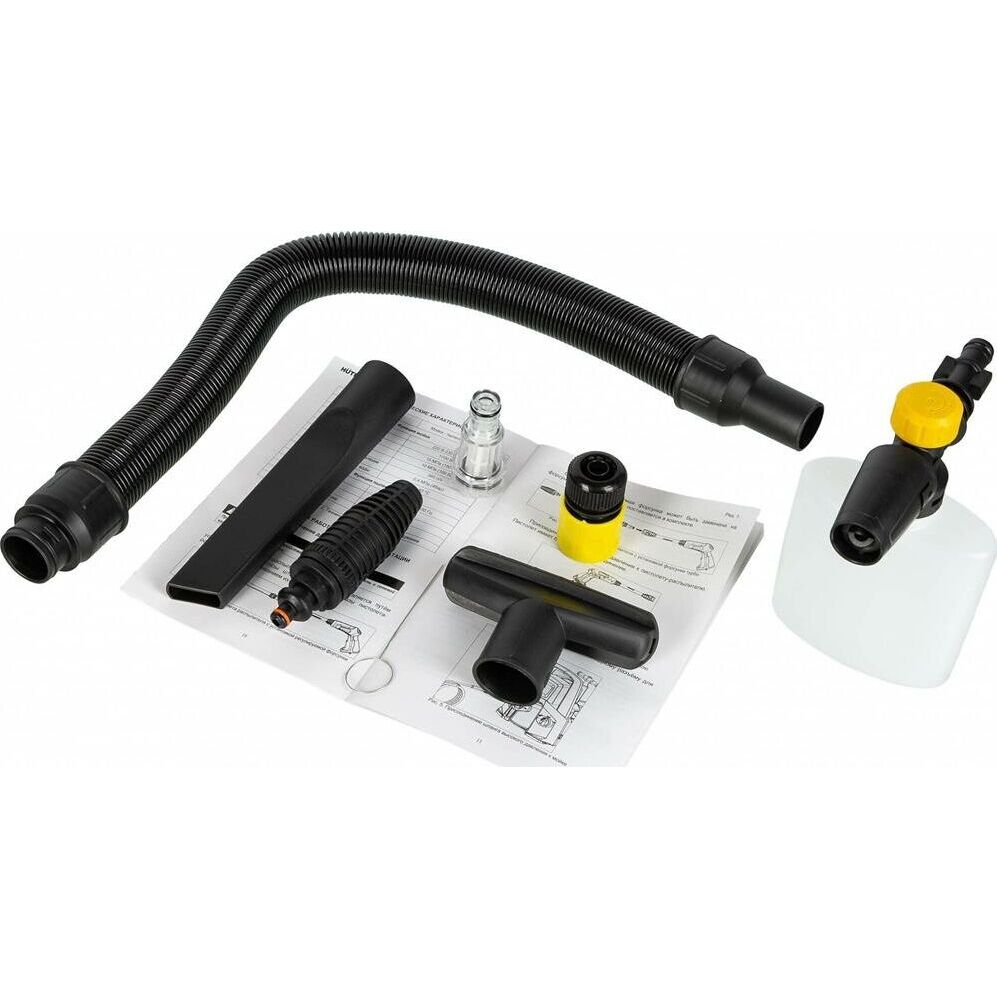 Мощность: 1,7 кВт. Напряжение: 220 В. Частота: 50 Гц. Тип двигателя: электрический, щеточный. Максимальное давление: 150 бар. Рабочее давление: 100 бар. Расход воды: 365 л/ч. Материал помпы: алюминий. Длина кабеля: 5 м. Длина шланга: 8 м. Барабан для шланга: нет. Тип пеногенератора: бытовой. Максимальное давление поступающей воды: 4 бар. Максимальная температура воды: 50 °С. Забор воды из емкости: есть. Мощность в режиме пылесоса: 1 кВт. Рабочее разряжение: 16 КПа. Скорость воздушного потока: 1,5 м3/мин. Режим работы пылесоса: всасывание и выдувание. Колеса: есть. Габаритные размеры, ДхШхВ: 370x360x470 мм.