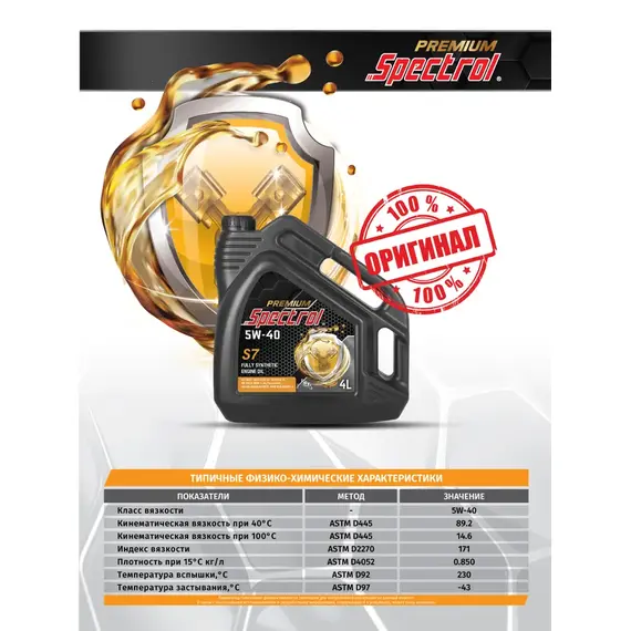 Моторное масло SPECTROL PREMIUM S7 5W-40 4л