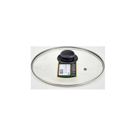 Крышка изготовлена из термостойкого стекла. снабжена пароотводом и имеет металлический обод. Пластиковая ручка на крышке не нагревается, имеет эргономичную форму и не скользит в руке. Можно мыть в посудомоечной машине. Очень удобна в использовании, т.к. позволяет контролировать процесс приготовления пищи не открывая сковородку или кастрюлю. Диаметр 26 см.