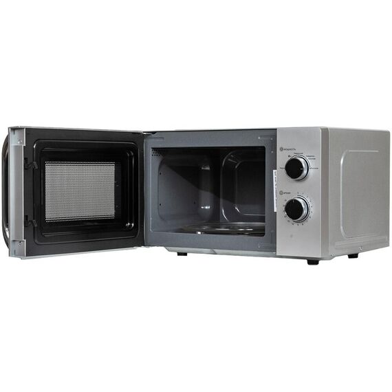 Печь микроволновая, объем 20л, выходная мощность 700 Вт, тип управления: механический, диаметр поворотного стола: 255 мм, количество уровней мощности: 5, автоматическое размораживание, таймер: 35 минут, тип открывания дверцы: ручка, сигнал окончания приготовления, цвет: серебро