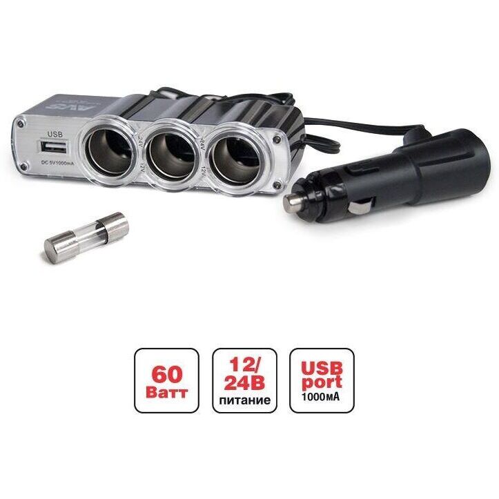 Разветвитель AVS CS314U прикуривателя 12/24 (на 3 выхода+USB)