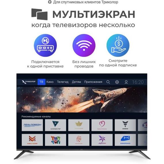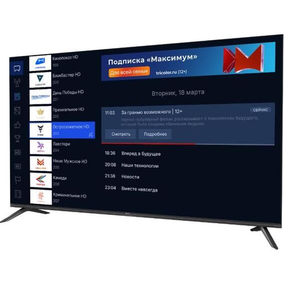 Телевизор Триколор H55UC2, SMART TV, 55", Ultra HD, 4K, голос, черный