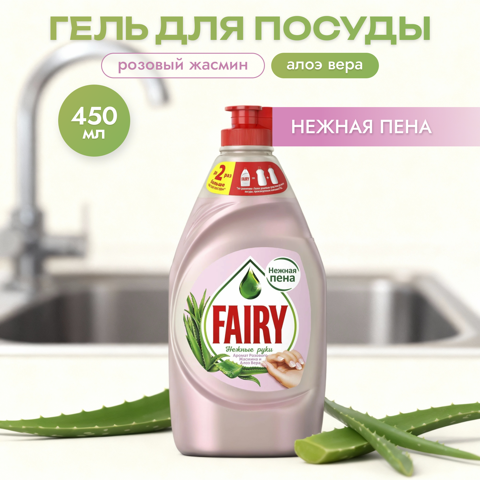 Средство для мытья посуды FAIRY Нежные руки Розовый Жасмин Алоэ Вера 450 мл