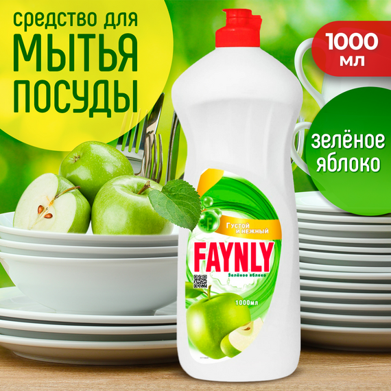 Средство для мытья посуды эффективно очищает и обезжиривает, устраняет запахи. Подходит для мытья овощей, фруктов и детской посуды. Faynly образует обильную пену, которая легко смывается, не оставляя никаких следов, полностью смывая их с поверхности даже в холодной воде. Уникальная биоразлагаемая формула делает процесс мытья легким и эффективным, а приятный аромат яблока добавляет удовольствия в процессе. Гель безупречно удаляет загрязнения, оставляя посуду чистой и блестящей.