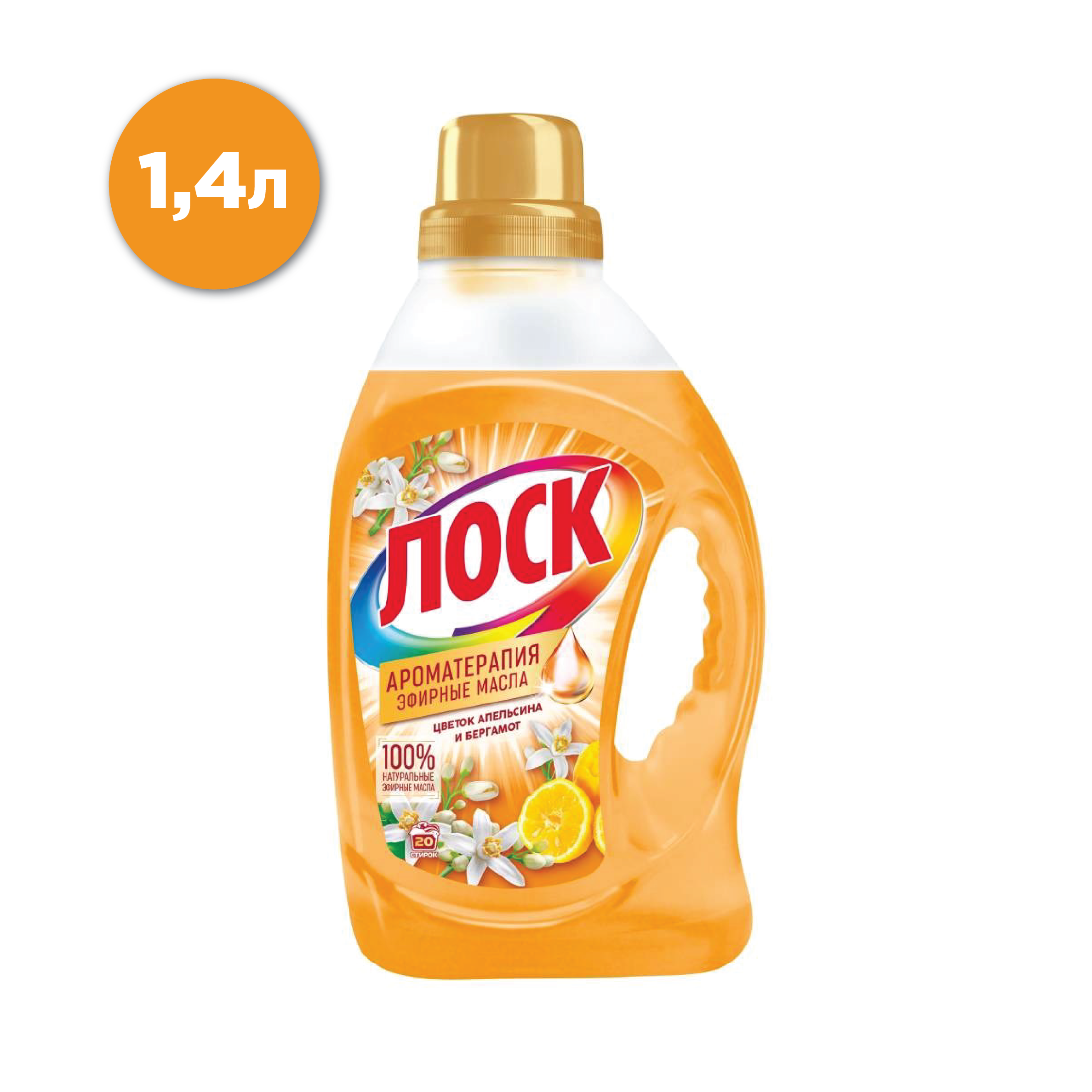 Жидкий порошок Лоск Ароматерапия Цветок апельсина и Бергамот: эффективно удаляет различные пятна; обладает уникальным сочетанием притягательных ароматов и 100% натуральных эфирных масел, которое подарит вещам длительную свежесть и чарующий аромат; подходит для всех типов тканей, кроме шерсти и шелка; обеспечивают щадящее отношение к ткани во время стирки; растворяется даже в холодной воде и при стирке на коротких циклах; не оставляет разводов и полностью выполаскивается водой; не пылит, не просыпается и не накапливается в кювете стиральной машины.