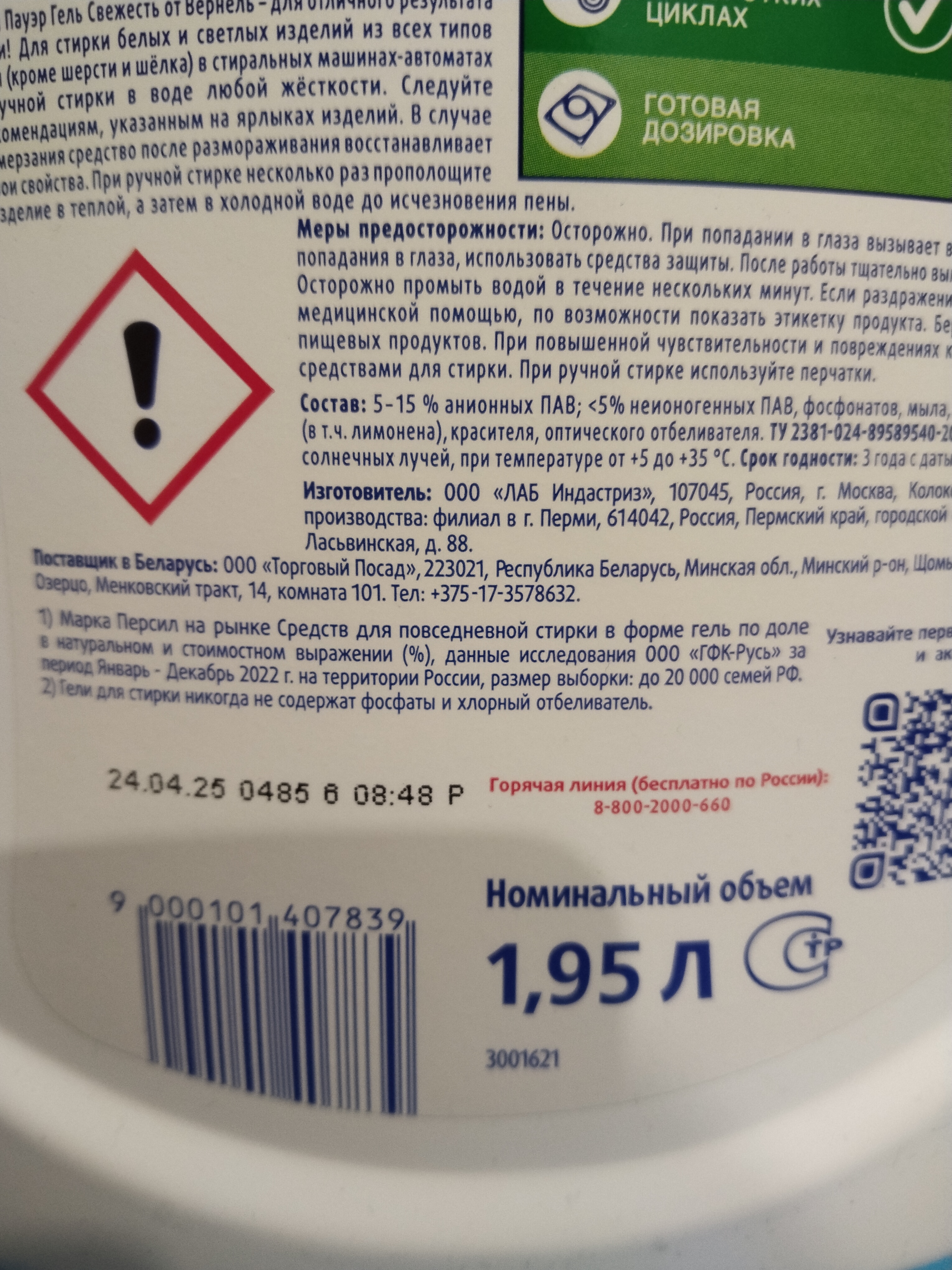 Гель для стирки Персил свежесть от Vernel, 1.9л