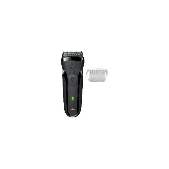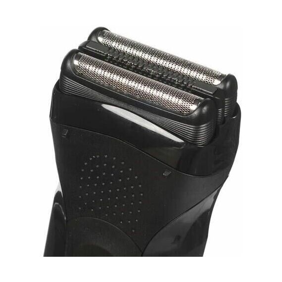 BRAUN 300S BLACK электробритва сеточная система бритья, сухое бритье, работает и от сети и аккумулятора (NiMH, время зарядки 8 ч), 2 бритвенные головки , плавающие головки, подвижный бритвенный блок, водонепроницаемый корпус, Напряжение: 100 - 240 В, автоматическое переключение.