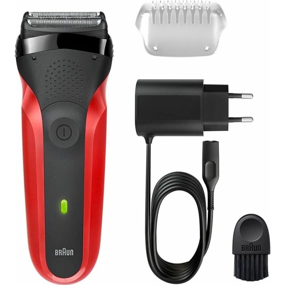 BRAUN 300S RED электробритва сеточная система бритья сухое бритье работает и от сети и аккумулятора (NiMH, время зарядки 8 ч) 2 бритвенные головки плавающие головки подвижный бритвенный блок водонепроницаемый корпус Напряжение: 100 - 240 В, автоматическое переключение