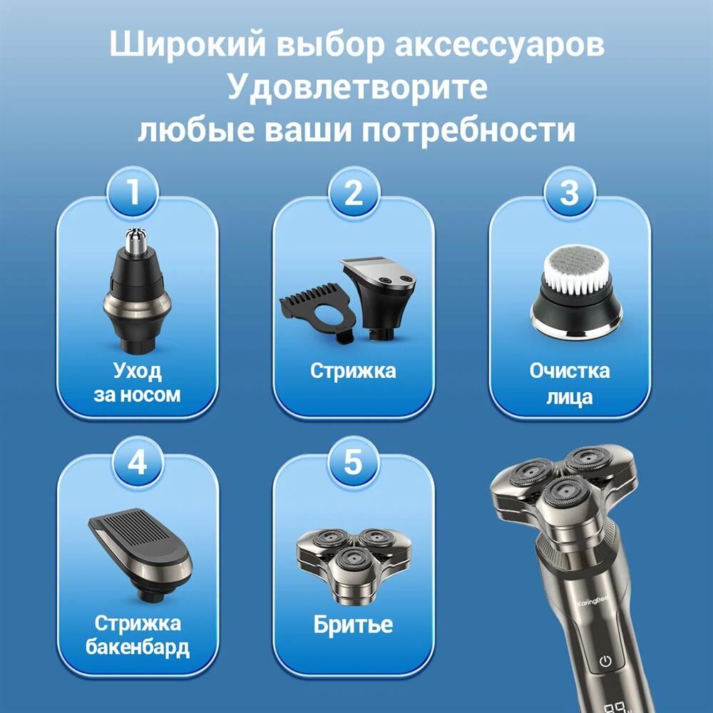 KaringBee Электробритва (тёмно-зелёный) KB-5803 Способ бритья влажное, сухое Питание автономное Количество бреющих элементов 3 Плавающие головки да Подвижный бритвенный блок да Время работы от аккумулятора 120 мин Время зарядки аккумулятора 1.5 ч Скорость мотора 5000 об/мин Особенности Водонепроницаемый корпус да Индикация зарядки, остаточной зарядки Диапазон напряжения 220 Особенности триммер Габариты и вес Высота 200 мм Ширина 93 мм Толщина 75 мм Вес 170 г