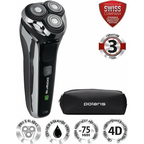 Бритва POLARIS PMR 0305R WET&DRY PRO 5 BLADES черный/хром