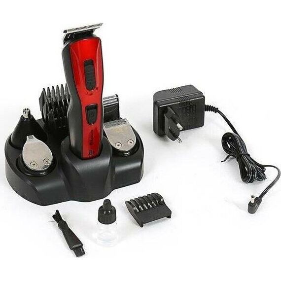 Триммер универсальный для бороды, усов, бровей, ушей, носа, висков и т.д., 10 насадок в комплект (5 гребней 3-12 мм, круглая насадка-триммер, 3 плоские насадки, насадка-бритва). 3-ступенчатая регулировка лезвий, автономная работа от аккумулятора до 50 ми
