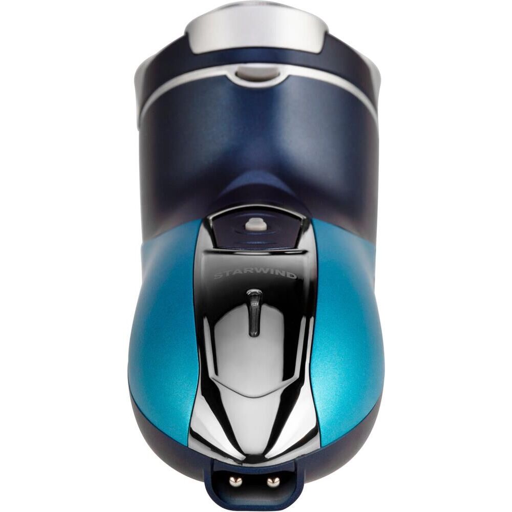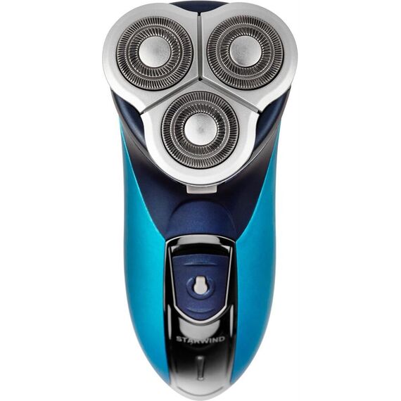 Бритва роторная. Способ бритья: сухое, Функциональные особенности: промывка ножей под водой, Конструктивные особенности: встроенный триммер, Индикация зарядки, Дополнительная комплектация: защитная каппа (колпачок), чехол, щеточка для чистки, Цвет: голубой/синий Кол-во бритвенных головок / сеток: 3 шт, Система электропитания от аккумулятора, Время автономной работы до 30 минут, Время полного заряда 8 часов, Срок гарантии: 12 месяцев.