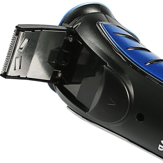 Мощность 3 Вт. Напряжение 1,2 В. Время работы на полностью заряженной аккумуляторной батарее 30 мин. Время зарядки 8 часов. 3 бреющие головки. Встроенный триммер для подравнивания висков. Электропитание от аккумуляторной батареи: Ni-Cd аккумулятор. Индикатор заряда батареи. Цвет: синий с черным. Аксессуары: Щетка для чистки, Защитная крышка, Сетевой шнур.