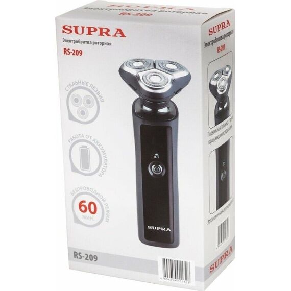 SUPRA RS-209 Основные характеристики Тип устройства электробритва роторная Бритвенная система роторная Тип бритья сухое Тип питания от аккумулятора Время непрерывной работы от аккумулятора, мин. 60 Время зарядки аккумулятора, час. 8 Количество бритвенных головок 3 Плавающие головки есть Возможность мытья лезвий водой есть Индикация Индикация зарядки есть Комплектация Комплектация электробритва, адаптер питания, защитная крышка, щеточка для чистки, гарантийный талон, инструкция на русском языке Корпус Материал корпуса пластик Цвет черный Дополнительные параметры Особенности автоматическая заточка микротомных ножей Габариты и вес Размер упаковки, см. (ВхШхГ) 18x6x10 Вес в упаковке, кг 0.23 Энергопотребление Потребляемая мощность, Вт. 5