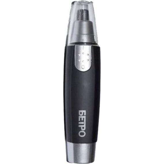 Триммер для стрижки волос в носу и ушах. Безопасная конструкция, мягкое покрытие ручки гарантирует легкое управление, в комплекте защитный колпачок и щеточка для чистки., Питание: батарейка 1.5В тип АА.