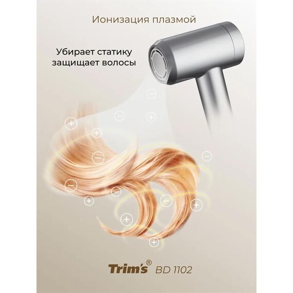 Подходит для профессионального и индивидуального использования Отвечает всем персональным требованиям для сохранения волос и создания укладки Обеспечивает Идеальное качество волос без потери времени и использования средств Преимущества: 1.Ионизация ПЛАЗМОЙ. Высокоскоростной поток воздуха переносит генерируемые частицы от корней до кончиков волос, убирая статику, делает волосы гладкими, послушными, защищает волосы от перегрева и сушки. 2.Высокоскоростной бесщеточный двигатель (BLCD) 110 000 об/мин, обеспечивает быструю сушку (3-5 мин) без высоких температур 3.Мульти комбинированные режимы: -5 стационарных температурных режима +турбо режим 3 скорости потока воздуха обеспечивают быстроту сушки 4.Низкое электромагнитное излучение , прибор безопасен для беременных и детей 5.Интеллектуальный режим самоочистки: Благодаря интеллектуальному управлению, двигатель вращается в обратном направлении, создавая обратный поток воздуха, очищая фен