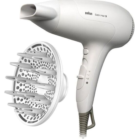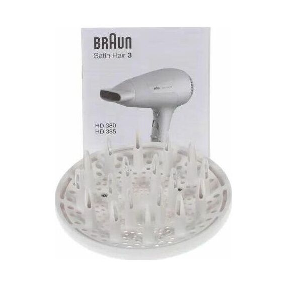 BRAUN HD385 Фен, Мощность 2000Вт, Ионизация,подача холодного воздуха, Независимая регулировка нагрева и воздушного потока, режимов нагрева: 3, режимов интенсивности воздушного потока: 2.