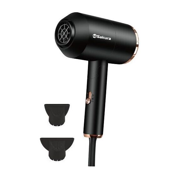 Серия Professional (АС мотор), 2000 Вт, 2 скорости, 3 температуры (холодный, теплый, горячий воздух), 2 насадки-концентратора, шнур питания 1,8 м, защита от перегрева, складная ручка, съемная задняя крышка. Цвет: черный.