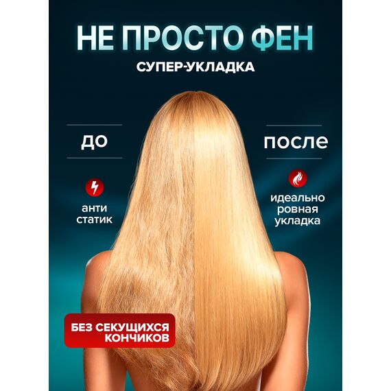 — Эргономичная форма, удобная ручка и длинный кабель с защитой от перекручивания обеспечивают комфорт при использовании. Фен подходит для всех типов волос — прямых, волнистых, пушистых, окрашенных или повреждённых. Идеально справляется с задачами сушки, выпрямления, создания локонов и придания объема.