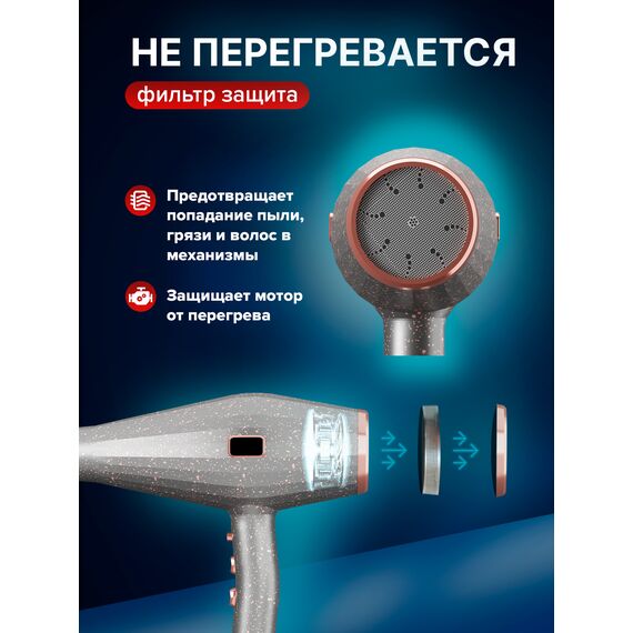 — Несколько температурных режимов и скоростей позволяют подобрать идеальный режим для любого типа волос.