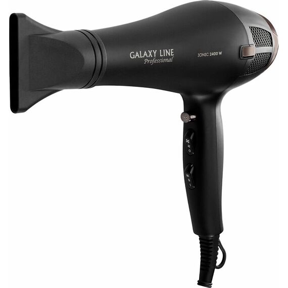Galaxy LINE GL 4356 Фен для волос профессиональный, 2400Вт, 220-240 В, 50 Гц, профессиональный АС мотор, защита мотора от перегрева, 2 скорости потока воздуха, 3 температурных режима, функция "Холодный воздух", насадка-концентратор