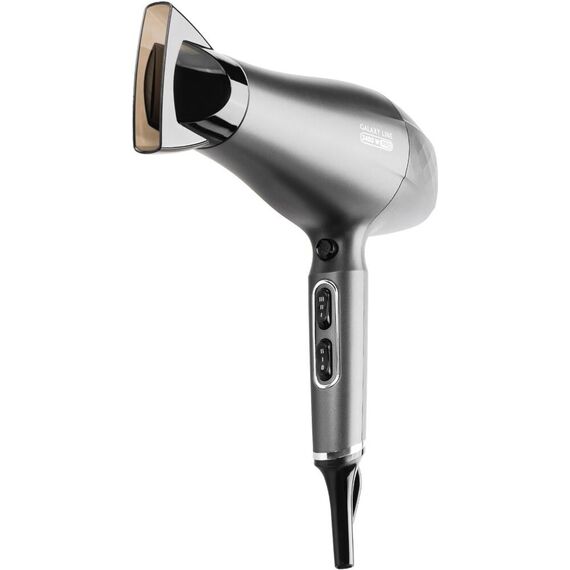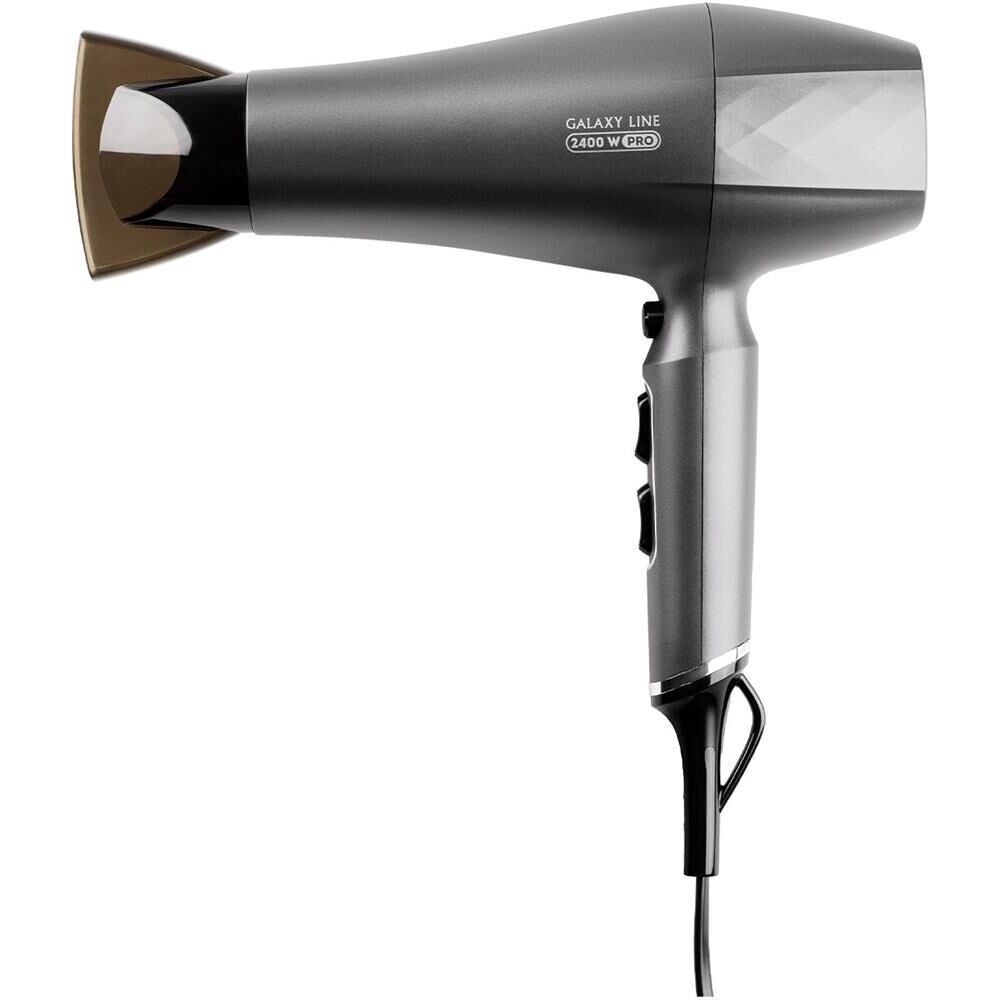 Фен для волос Galaxy LINE GL 4368, антрацитовый, 2400 Вт, защита мотора от перегрева, функция «холодный воздух», 3 темп. режима, 2 скорости потока воздуха, длина шнура питания 175 см, подвесная петля, съемная защитная решетка, насадка-концентратор