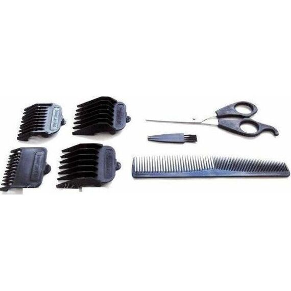 - Двигатель вибрационного действия - Подвижный и неподвижный ножи изготовлены из нержавеющей стали с хромированным покрытием - Петля для удобного хранения - Насадки для стрижки 4 шт., ножницы, расческа - Сетевое питание - Номинальное напряжение 220 В - Частота 50 Гц - Номинальная мощность 12 Вт Характеристики Страна производства: Китай Тип: машинка для стрижки Источник питания: сеть Количество насадок: 4 Мощность: 12 Вт Регулировка длины: сменные насадки