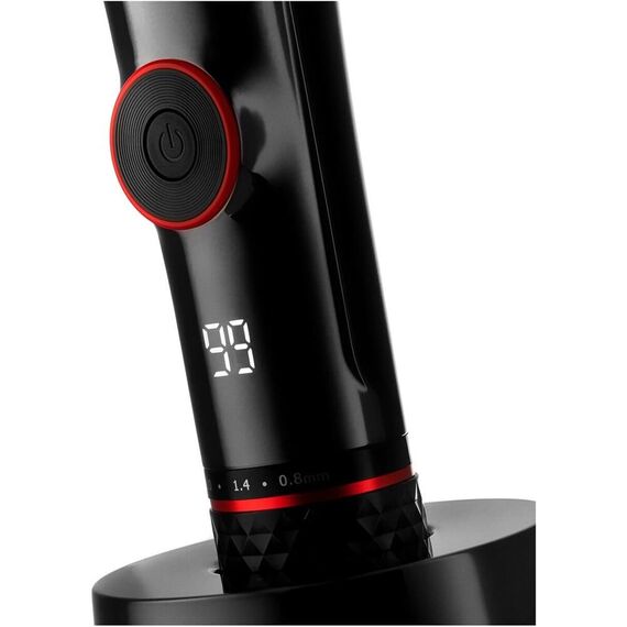 Фиксированные лезвия из высококачественной стали Керамические подвижные лезвия Установка длины поворотом корпуса 0.8 мм.,1.4 мм., 2.0 мм. 4 съёмные насадки 3 мм., 6 мм., 9 мм., 12 мм. Литиевая батарея 1*700мАч. Турборежим Время заряда батареи 1,5 часа Время непрерывной работы 1 час. LED-дисплей Поворот базы на 360°С Индикация уровня заряда Возможность работы от сети и от аккумулятора Удобная подставка для подзарядки и хранения Аксессуары: щёточка, смазочное масло Мощность 5 Вт.